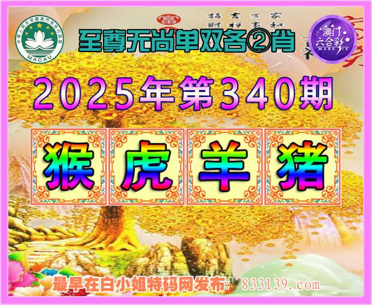 340期:〖至尊无尚〗 单双各②肖【猴..羊.猪】开:虎16